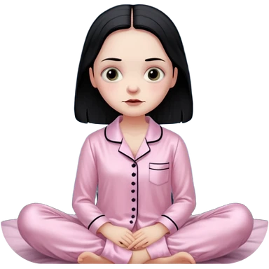 Full stunning Wednesday Addams in a Light pink silk pyjamas set emoji | AI Emoji Generator