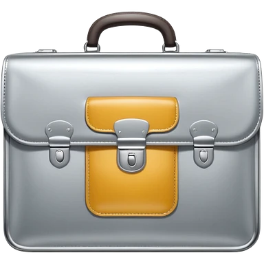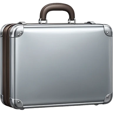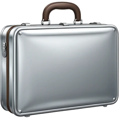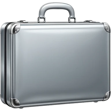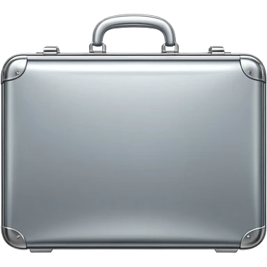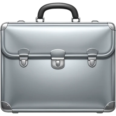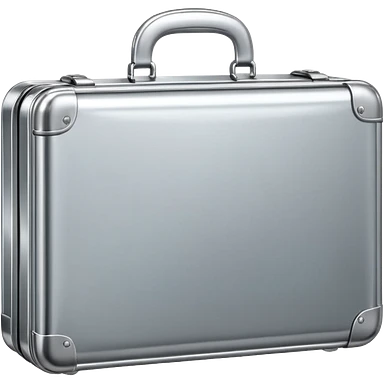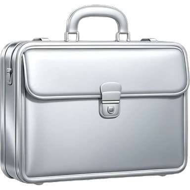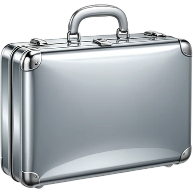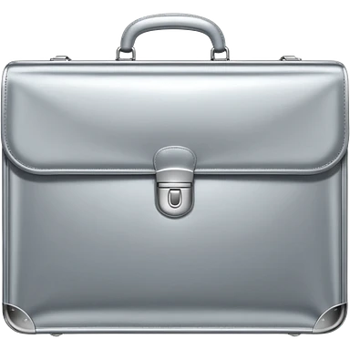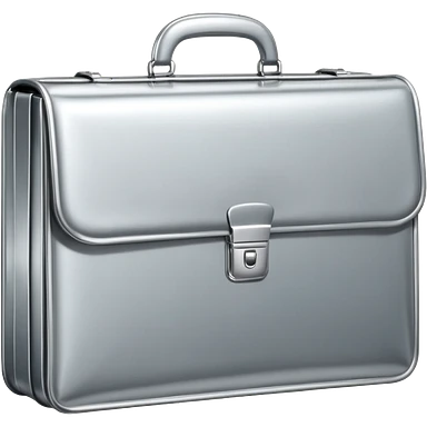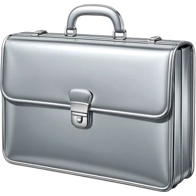 A luxury briefcase emoji made of polished silver chrome, smooth rectangular shape, metallic reflections, minimal high-end design, swag business aesthetic, iOS emoji style, centered, clean white background emoji