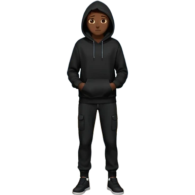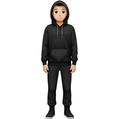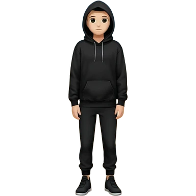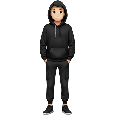 fullbody Mysterious man in black hoodie, hands in pockets and black pants emoji