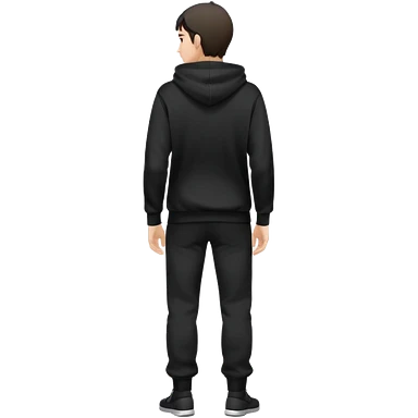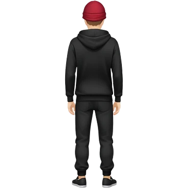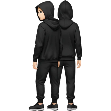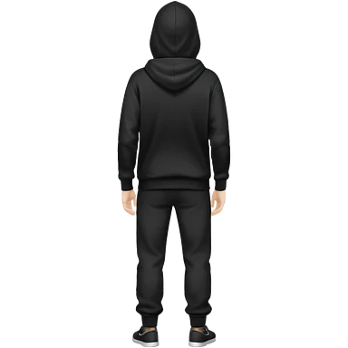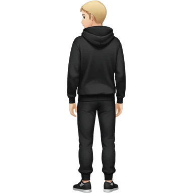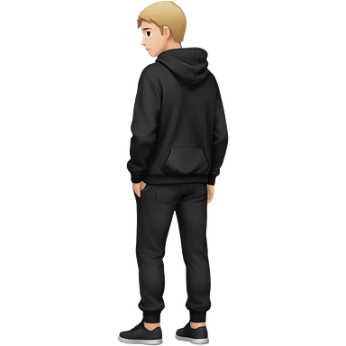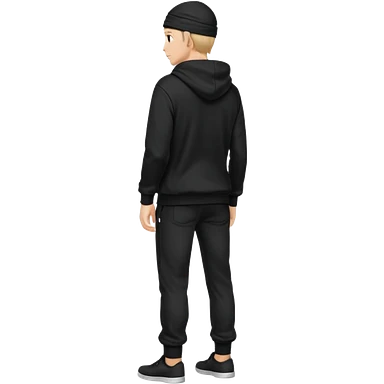 fullbody Mysterious shy caucasian man in black hoodie, hands in pockets and black pants rear backview emoji