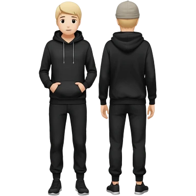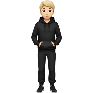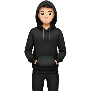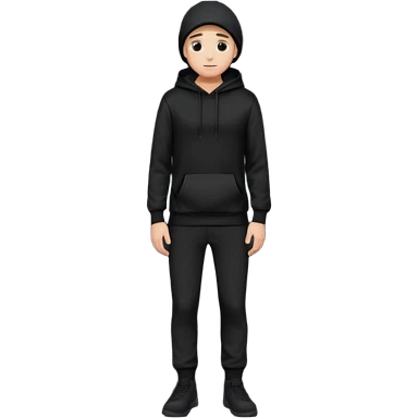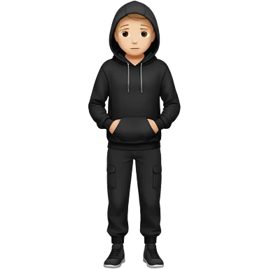 fullbody Mysterious shy caucasian man in black hoodie, hands in pockets and black pants emoji