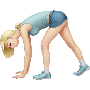 buxom blonde woman, casual outfit, bending over, safe for work emoji