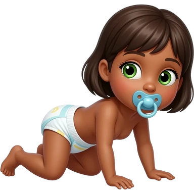 Brown-skinned green-eyed girl crawling and wearing a cloth diaper sucking on pacifier emoji