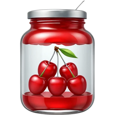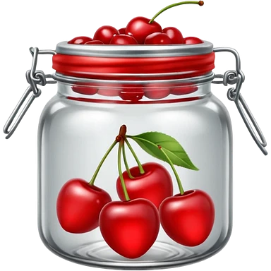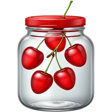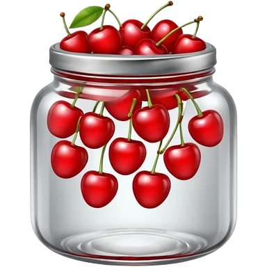 Realistic glass jar with silver metallic lid filled with maraschino cherries inside of it. emoji