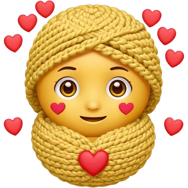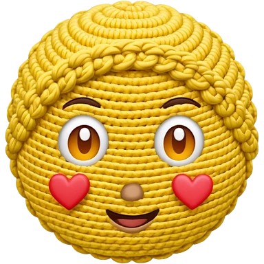 Normal Cute Yellow face emoji with hand crocheting with hearts around head emoji