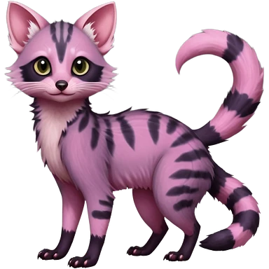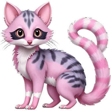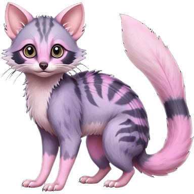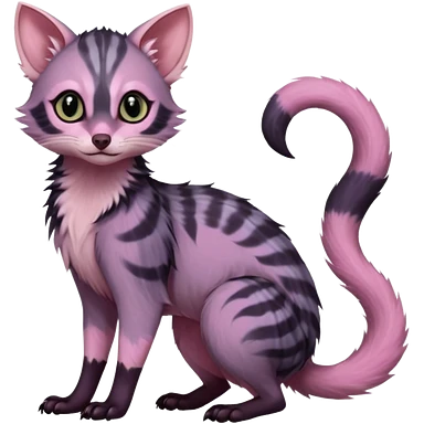 Deep dark pastel bright whitish pale Violet-pink-gradients with darker points Asian painted anime-styled big-eyed shiny glorious divine marked exotic cool beautiful realistic Lykoi-civet-genet-sergal-ocicat-oncilla-animal-Fakémon-hybrid-fursona (full body) emoji