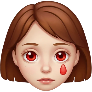 brown haired girl red rimmed eyes emoji