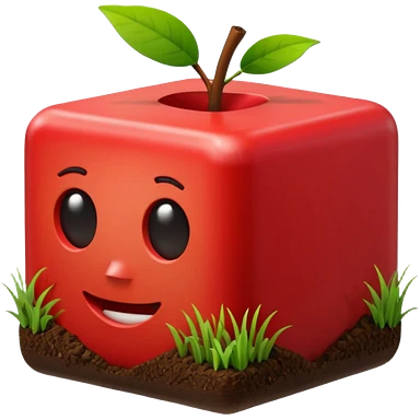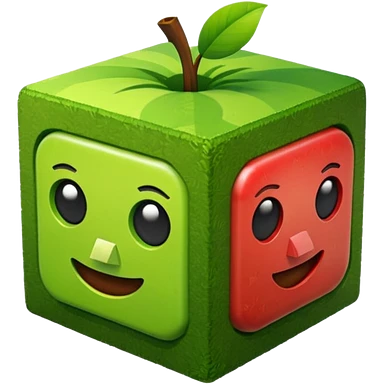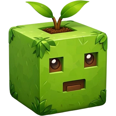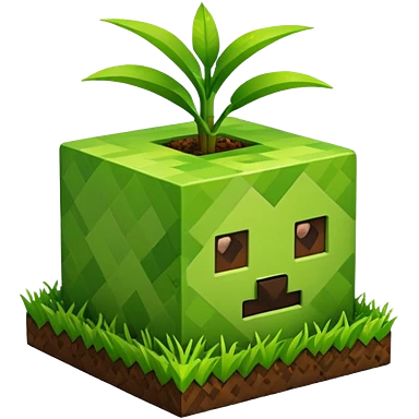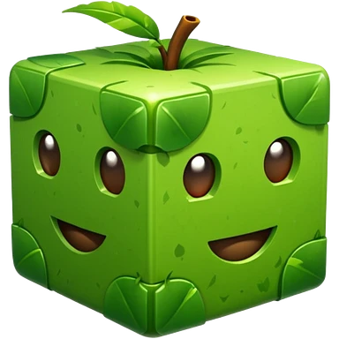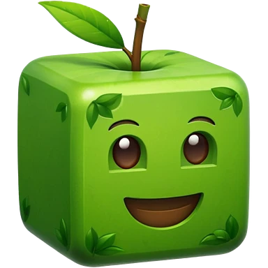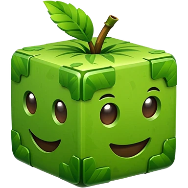 A 3D Apple-style emoji of a Minecraft grass block, cubic shape, with bright green grass on top and brown soil with pixel texture on the sides, simple and cute cartoon design. emoji