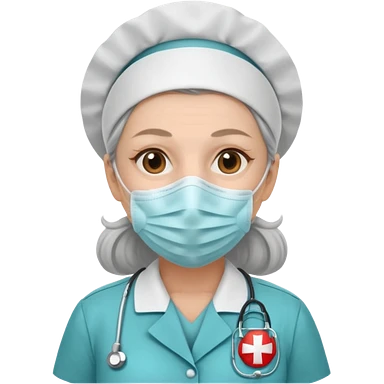 Old, female, wearing mask, solemn, nurse uniform emoji