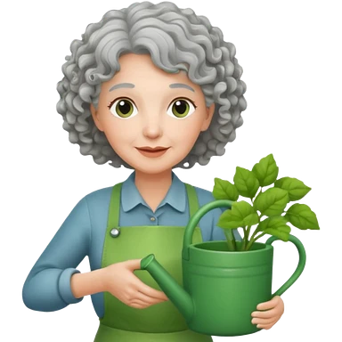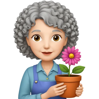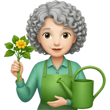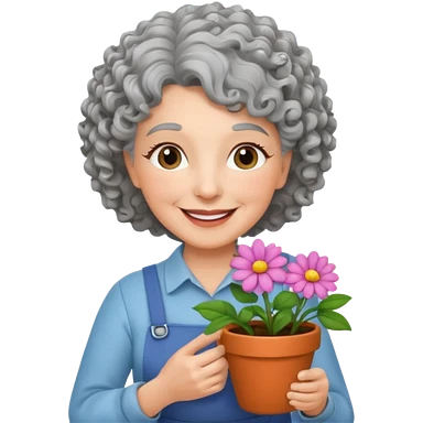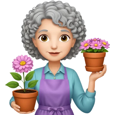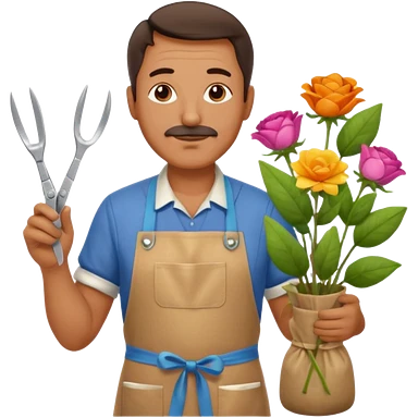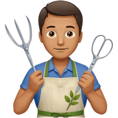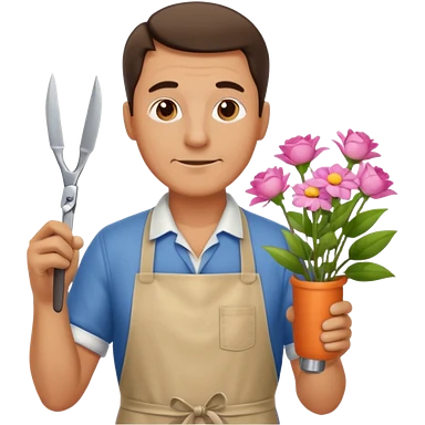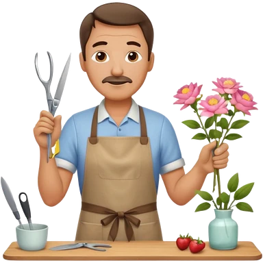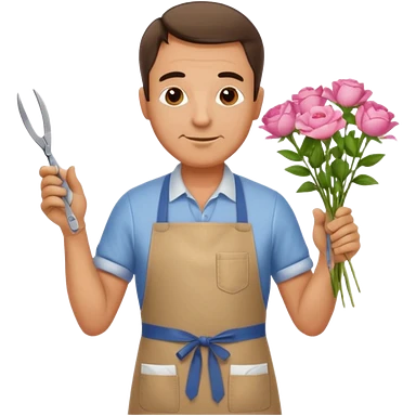 Middle-aged male florist – apron on, trimming stems with scissors emoji