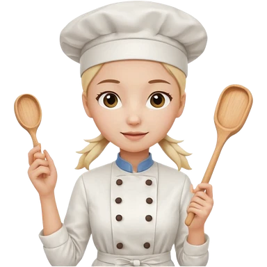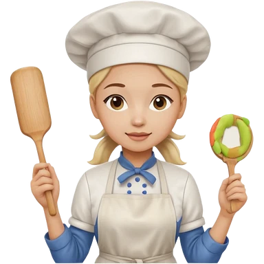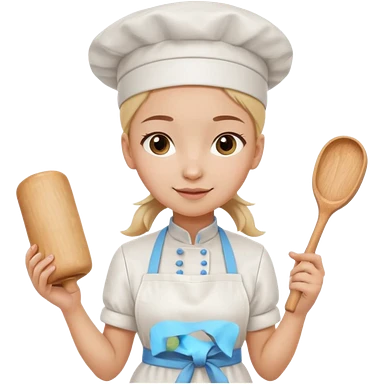 Young female pastry chef - single ponytail, apron, wearing a white hat, holding a rolling pin emoji