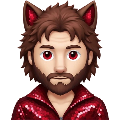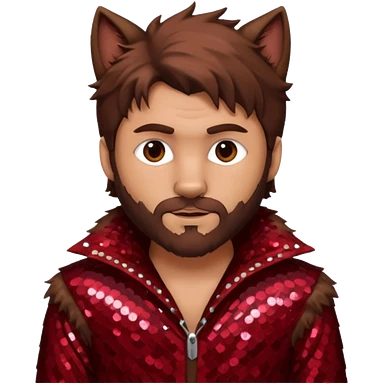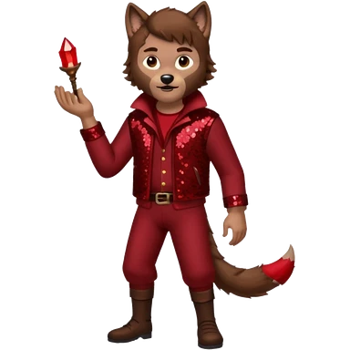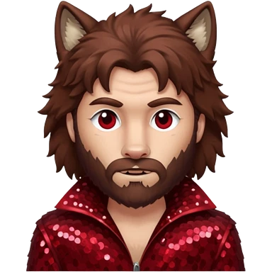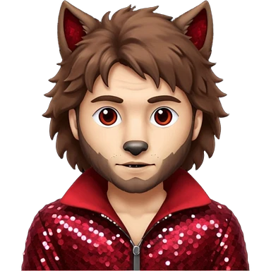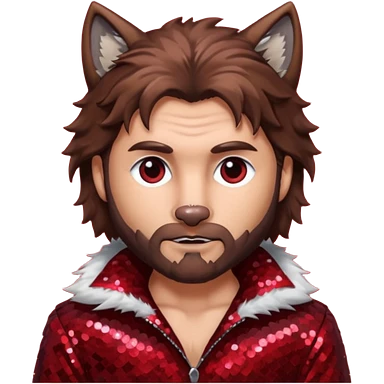 The Wolf Man with brown hair & fur dark red sequin outfit emoji