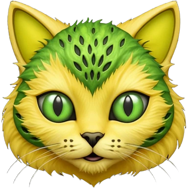 furless smooth dark yellow alien cat face with green ailen eyes emoji | AI Emoji Generator