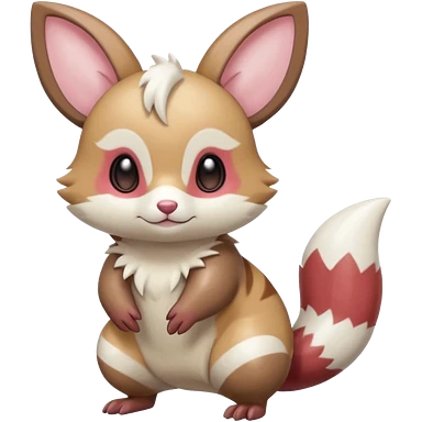 Cute silky soft smooth shiny adorable kawaii big-eyed anime-styled pastel Furret-Minccino-Zangoose-Buizel-hybrid-fusion, full body emoji