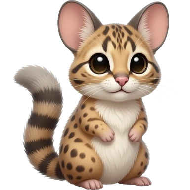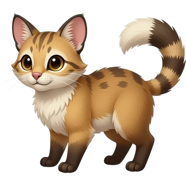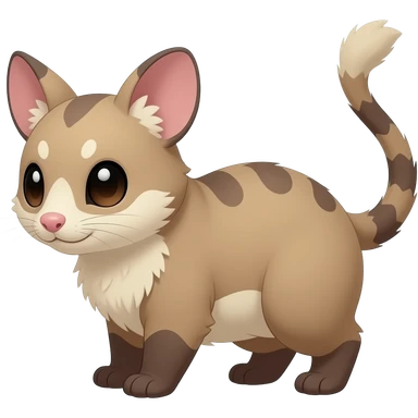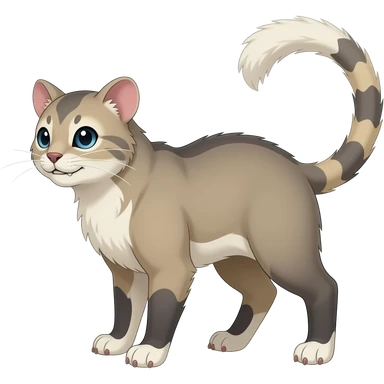 Greyish brownish beige ginger, soft realistic romantic vintage antique divine beautiful elegant pretty precious cute young youthful Fakémon-Pokémon-opossum-feline-mouse-serval-caracal-chinchilla-Minccino-Cinccino-Meowstic-rodent-hybrid-creature with a tufted tail (full body) emoji
