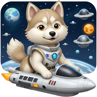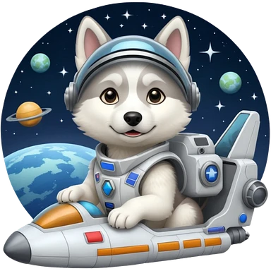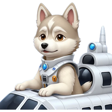 furry white coat husky in full battle gear posing cutely on a space cruiser emoji
