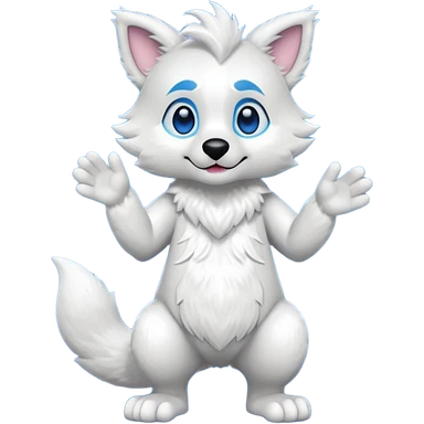 wolf fursuit with brown eyes, white dishdasha, happy expression, right hand visible, emoji style icon emoji