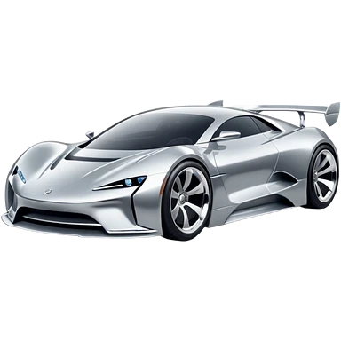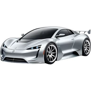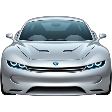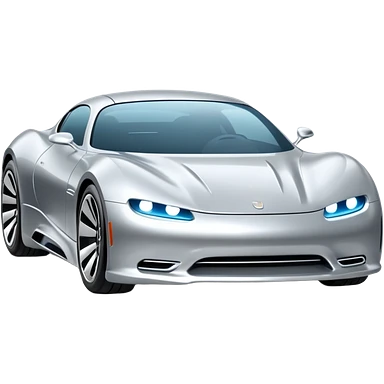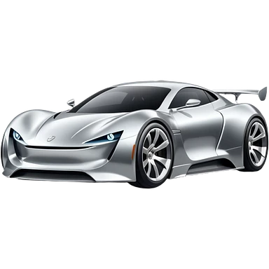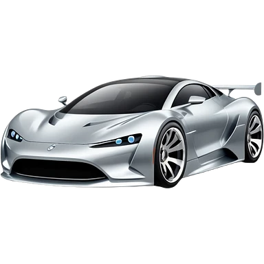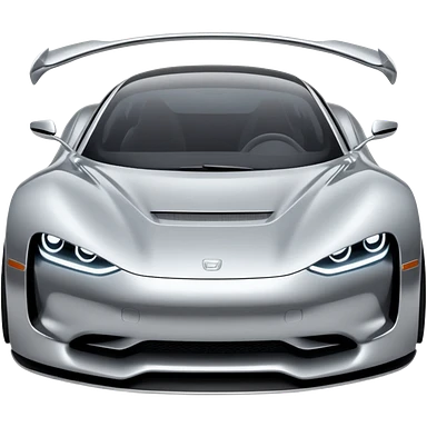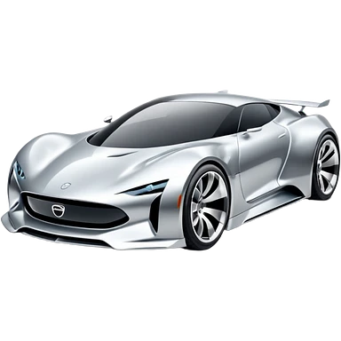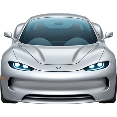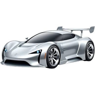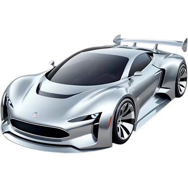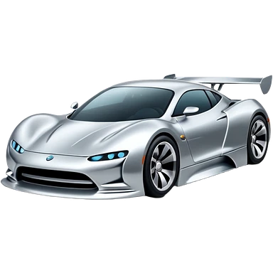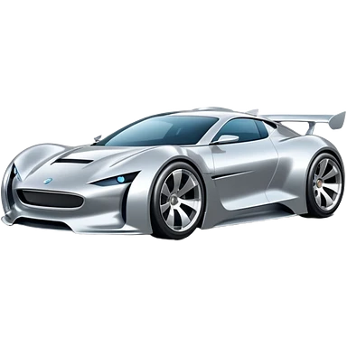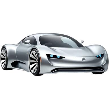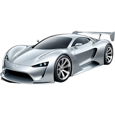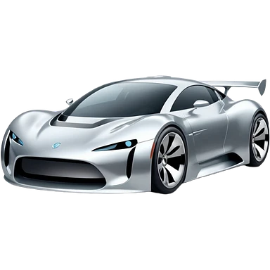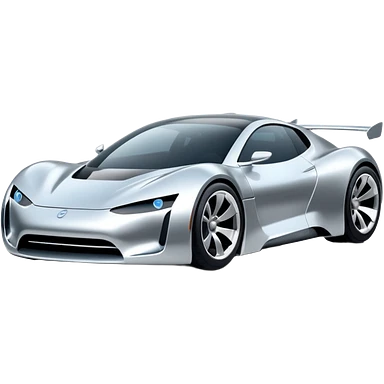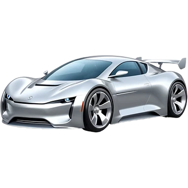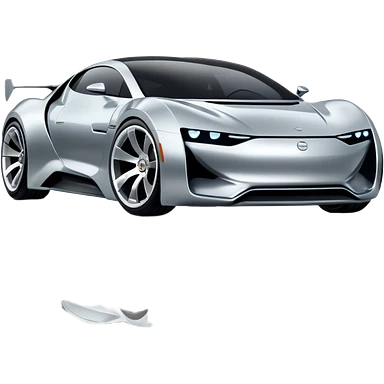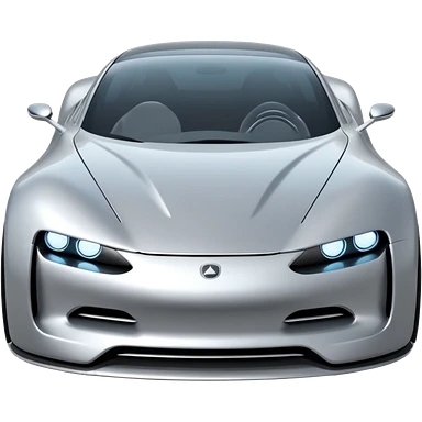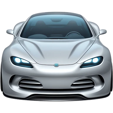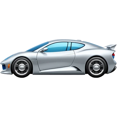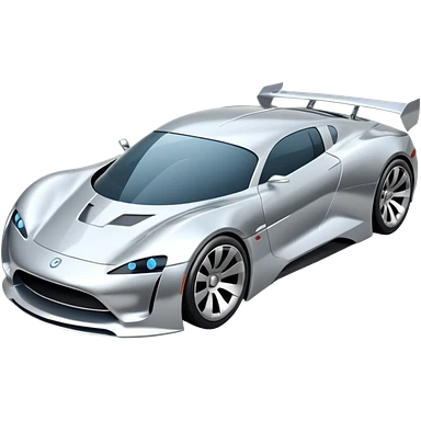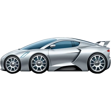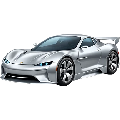 A low-profile futuristic car emoji made of polished silver chrome, wide body stance, smooth aerodynamic shape, glossy metallic surface, soft reflections, luxury swag aesthetic, minimal details, iOS emoji style, centered on clean white background, studio lighting emoji