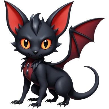 Futuristic Gothic Black Cute Dark Abyssal Vampiric Batty Ethereal Modern Salandit-Litten-Noibat-Abyss-Lykoi-Fakémon-creature-hybrid Full Body emoji