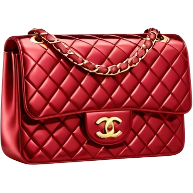 Isolated 3d rendering, ultra sparkly red metallic foil appearance, Chanel bag, 14k gold details emoji