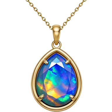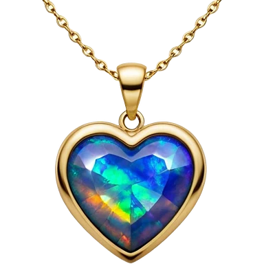 Futuristic colored, 4D opal gemstone, 14K gold necklace, isolated emoji