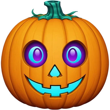 futuristic glowing jack-o-lantern emoji face, purple and cyan carved glow, dark background emoji