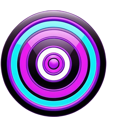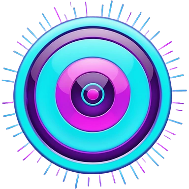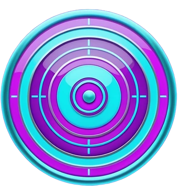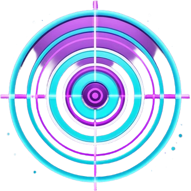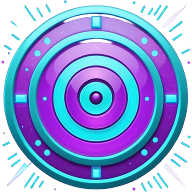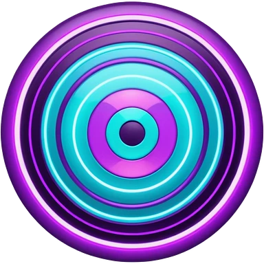 Futuristic glowing bullseye target emoji, neon purple and cyan holographic glow, dark background, digital tech style, abstract sparkles, no face. emoji