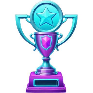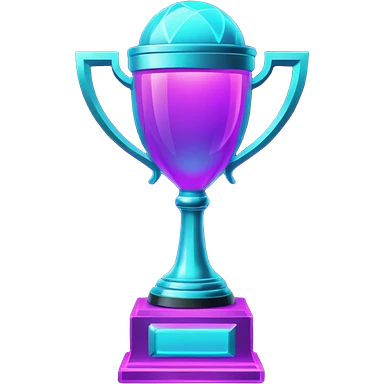 futuristic glowing neon trophy beside, purple and cyan glow, dark background emoji