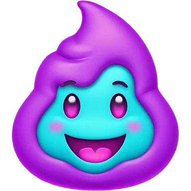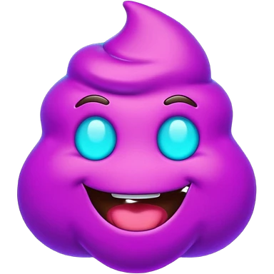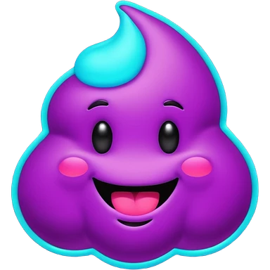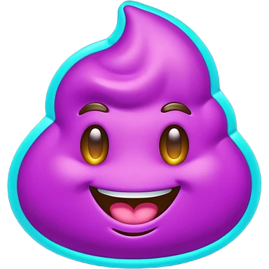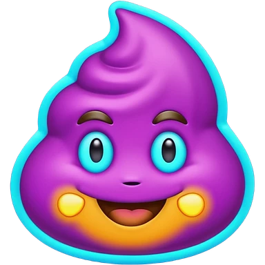 futuristic glowing poop emoji with funny smiling face, purple and cyan neon glow, dark background emoji