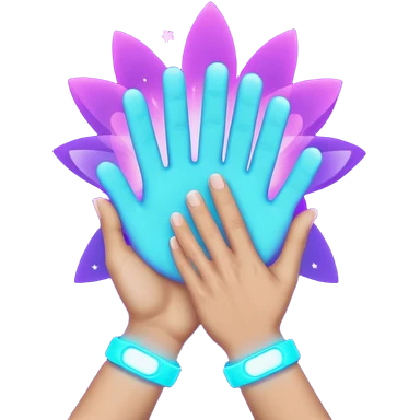 futuristic glowing clapping hands, purple and cyan glow, dark background emoji