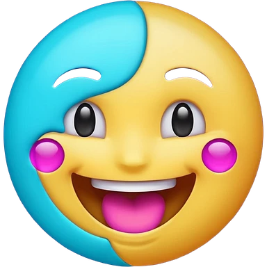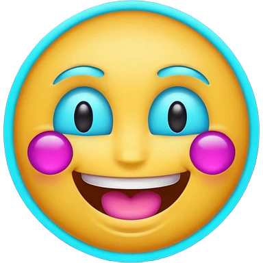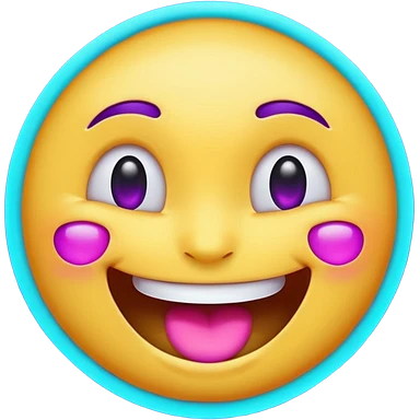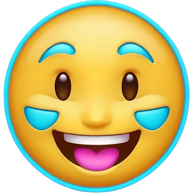 glowing emoji face laughing, purple and cyan neon light, dark background emoji