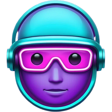 Futuristic glowing neon VR headset, purple and cyan light, dark background, digital tech style emoji