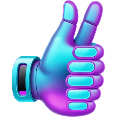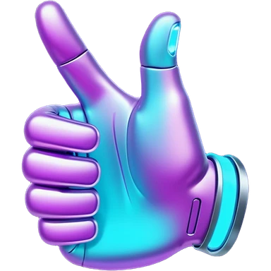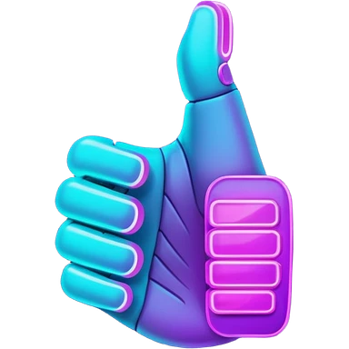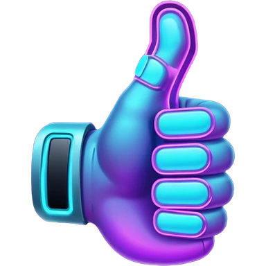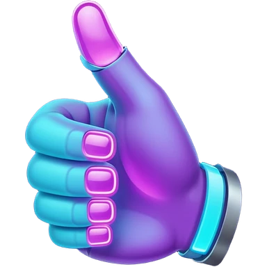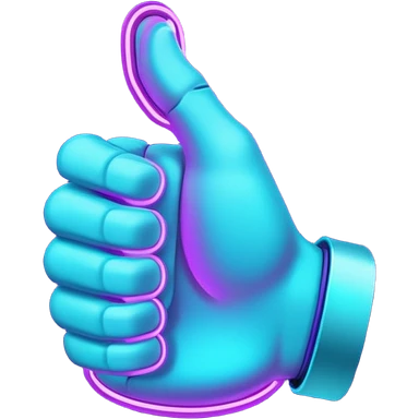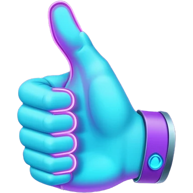 futuristic glowing thumbs up, neon purple and cyan light, dark background, digital tech style emoji