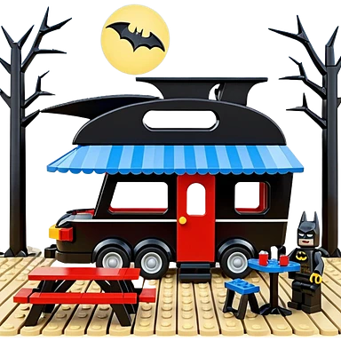 Jetson’s Ultra hotrod cute Lego Haunted Batman dream house Caravan with picnic table and folding chairs at Christmas emoji