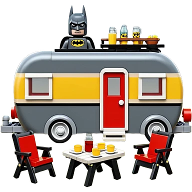 Jetson’s Ultra hotrod cute Lego Haunted Batman dream house Caravan with picnic table and folding chairs on top emoji