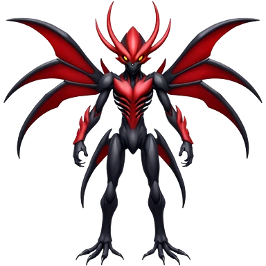 Futuristic shiny glossy edgy dark shady shadowy evil Scizor-Bisharp-Darkrai-Fakémon-hybrid-creature (full body) with white rib cage emoji