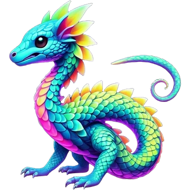 futuristic lush tropical exotic patterned swirly random-colored neon-colored Fakémon-Trico-creature (full body) emoji | AI Emoji Generator