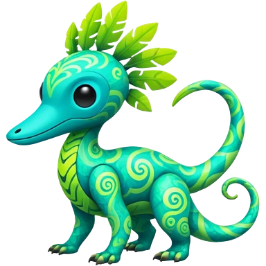 futuristic lush tropical exotic patterned swirly random-colored neon-colored Fakémon-Trico-creature (full body) emoji
