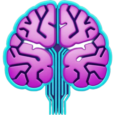 futuristic minimalistic glowing brain circuit icon, neon purple and cyan energy lines, dark background, tech AI design, 1:1 aspect ratio, no face emoji | AI Emoji Generator