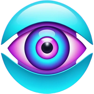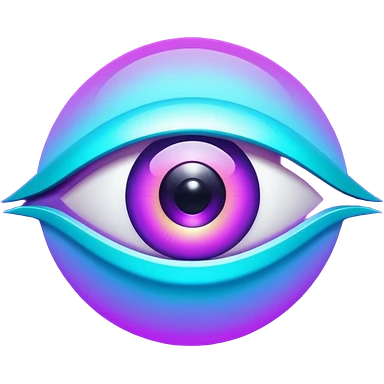 futuristic minimalistic glowing eye symbol, purple and cyan gradient glow, representing vision and future, dark background, 1:1 aspect ratio, no face emoji