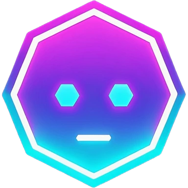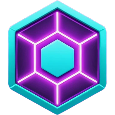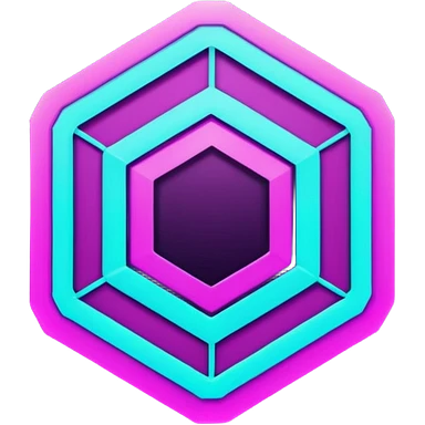 futuristic minimalistic glowing hexagon icon, neon purple and cyan glow, dark background, tech modern symbol, 1:1 aspect ratio, no face emoji