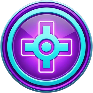 futuristic minimalistic glowing gamepad icon, purple and cyan neon light, dark tech background, 1:1 aspect ratio, no face emoji