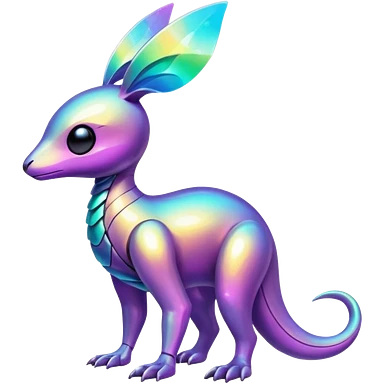 Futuristic Iridescent Ethereal Modern Amaura-Bayleaf-Fakémon-creature-hybrid Full Body emoji