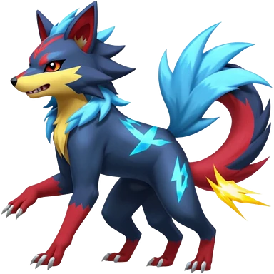 Edgy futuristic Zeraora-Zoroark-Salandit-Lucario-fusion emoji