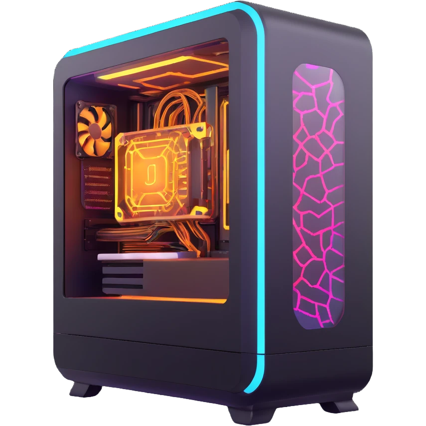futuristic PC with vibrant light patterns inside glass case emoji | AI Emoji Generator