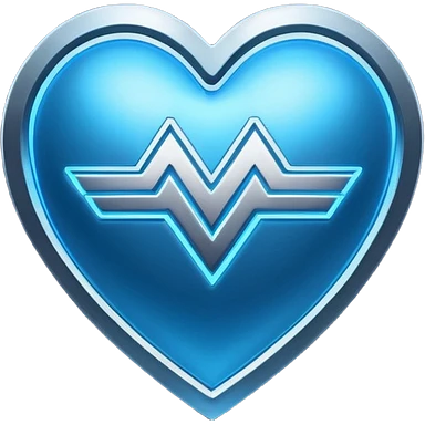Futuristic premium medical AI logo emoji, sleek metallic heart or shield, ECG line forming stylized letters AI, neon blue and silver, 3D effect, glowing edges, minimal but bold, tech-savvy, high-tech healthcare branding, instantly recognizable, viral-ready, vector flat style with subtle shadows emoji | AI Emoji Generator