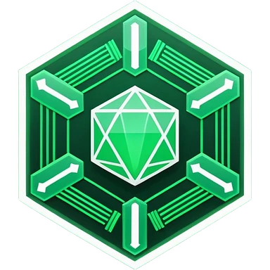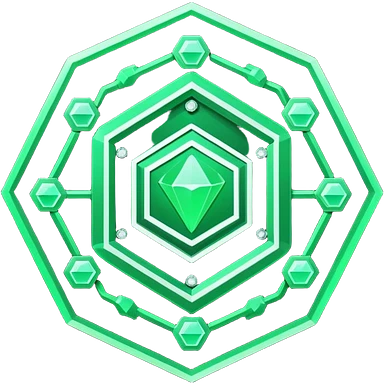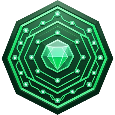 “A glowing green, futuristic-looking icon, resembling a stylized hexagon with circuit-like patterns, set against a dark background.” emoji