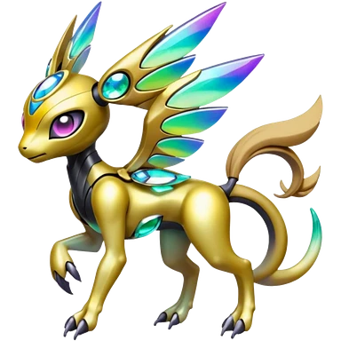 Futuristic Shiny Colorful Meloetta-Wargreymon-Trico-Pokémon-Digimon-Fakémon-fusion-hybrid-creature emoji