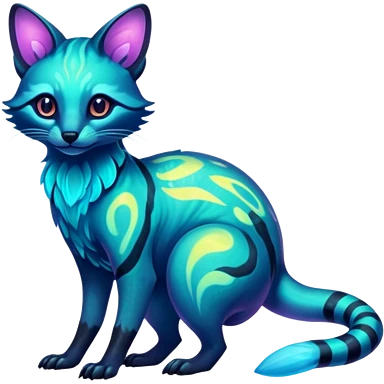 Exotic futuristic bioluminescent translucent transparent lush warm-colored neon-glowing iridescent Fakémon-Fionbri-Vernid-Sergal-Genet-creature emoji
