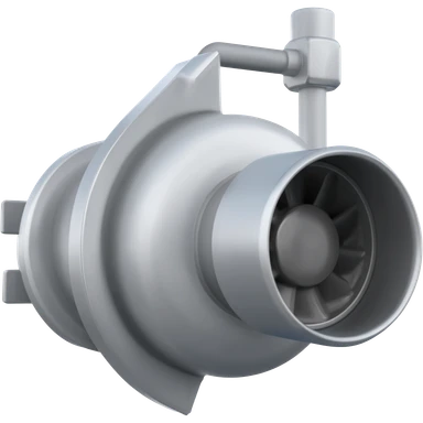 Un turbo per auto stilizzato, di piccole dimensioni come un’emoji, con aspetto metallico lucido, dettagli meccanici come ventole e tubi, e un effetto di energia o velocità attorno, in stile minimal ma realistico, su sfondo trasparente. emoji